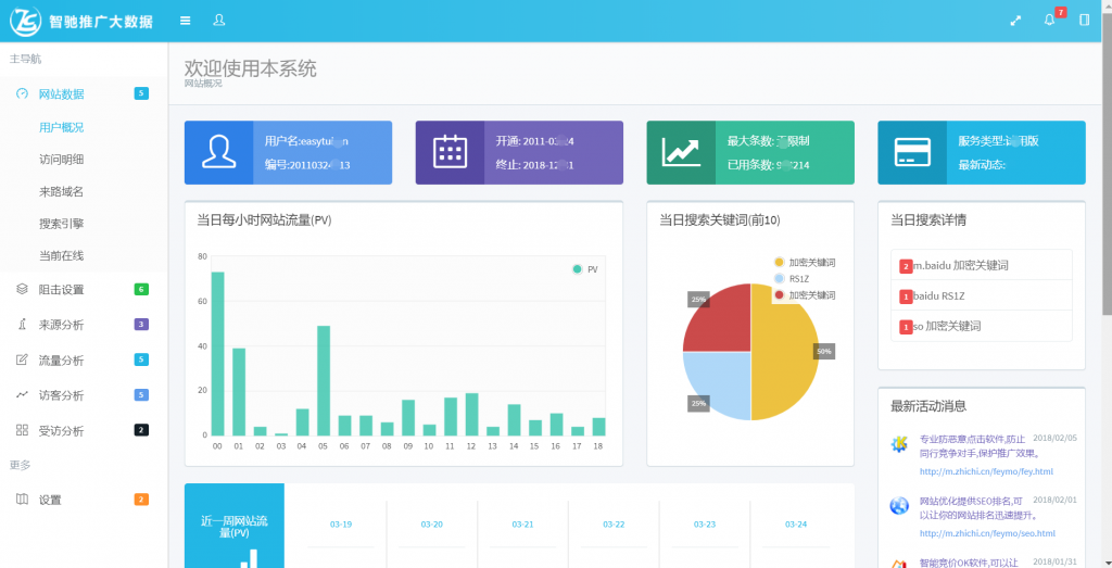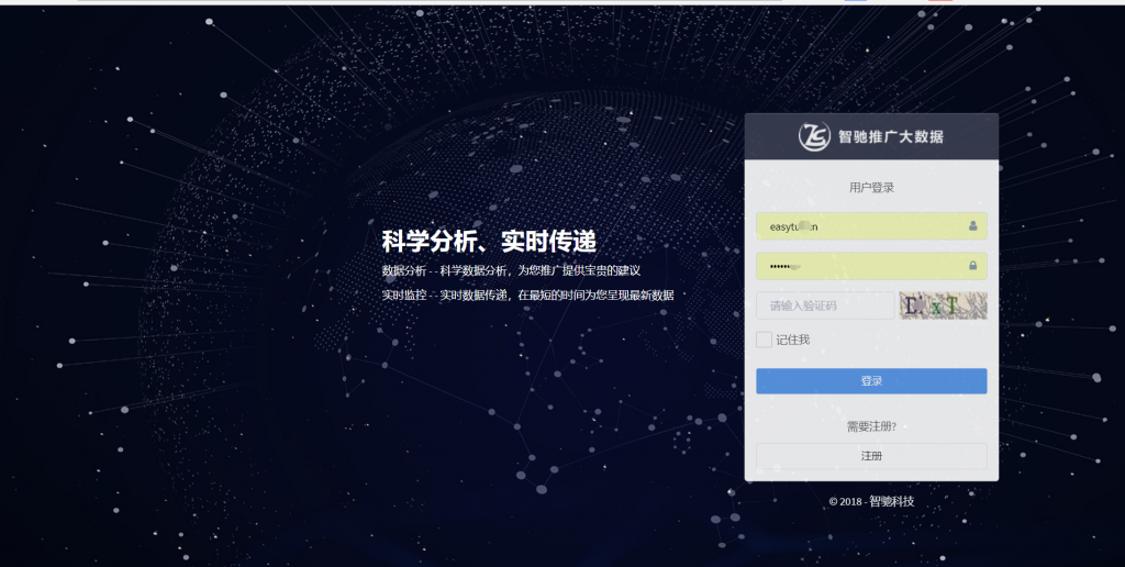 新需求,經(jīng)過智馳科技技術及客服人員的全力協(xié)作,于2018年3月15日,隆重推出:網(wǎng)站推廣大數(shù)據(jù)系統(tǒng)。以下是推廣大數(shù)據(jù)的登錄頁面: