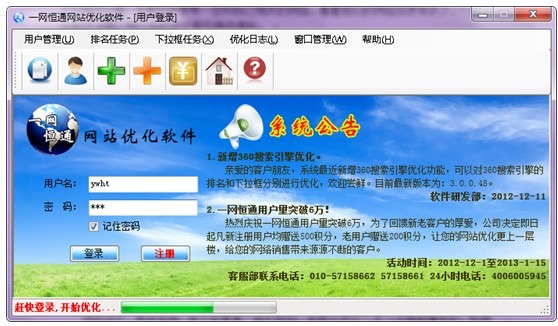 軟件網(wǎng)址(www.ywht.net),這是一款懶人軟件,由北京智馳科技有限公司(www.zhichi.cn)專業(yè)開發(fā),享有國家版權(quán)中心軟件著作權(quán),適合網(wǎng)絡(luò)營銷、企業(yè)網(wǎng)站推廣等人士使用。當(dāng)然,專業(yè)人士也可以用這個(gè)軟件作為輔助工具。簡(jiǎn)單介紹一下它的原理,這款軟件是根據(jù)各搜索引擎的算法,針對(duì)你要優(yōu)化的關(guān)鍵字做相應(yīng)的處理,從而可以增加網(wǎng)站在搜引擎的權(quán)重以及關(guān)注度,最終達(dá)到排名上升的目的。