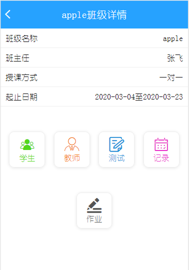 點(diǎn)擊具體的某一個(gè)班級(jí),可以看到班級(jí)里面的相關(guān)信息,在班級(jí)詳情里面,我們可以查看和班級(jí)關(guān)聯(lián)的學(xué)生和教師信息,也可以查看學(xué)生的測(cè)試記錄,還可以查看學(xué)生的記錄(登錄記錄和學(xué)習(xí)記錄)和作業(yè)情況(點(diǎn)擊具體作業(yè)即可查看已完成和未完成的詳細(xì)情況),可以讓老師很詳細(xì)的掌握班級(jí)和學(xué)生的詳細(xì)信息,個(gè)性化輔導(dǎo),提高孩子的成績(jī)。