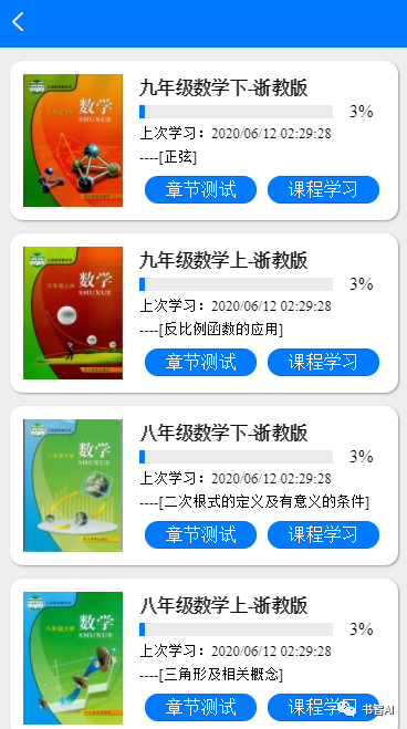 課程列表頁(yè)簡(jiǎn)單顯示課程進(jìn)度以及上次學(xué)習(xí)情況